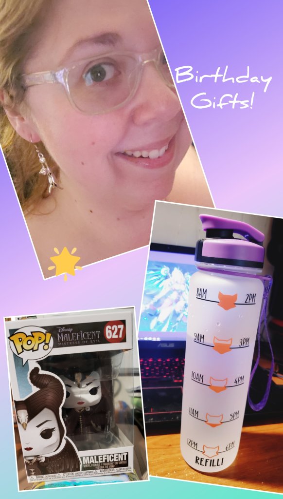 My great friend B got me a couple of things I wanted off my Amazon wishlist and one that wasn’t! The pop was unexpected, the earrings are adorable, and the water bottle will help greatly in keeping me hydrated. I can definitely use the reminder throughout the day. The front has a cute fox that says Oh For [fox image] Sake Drink Your Effing Water and I love it so much!