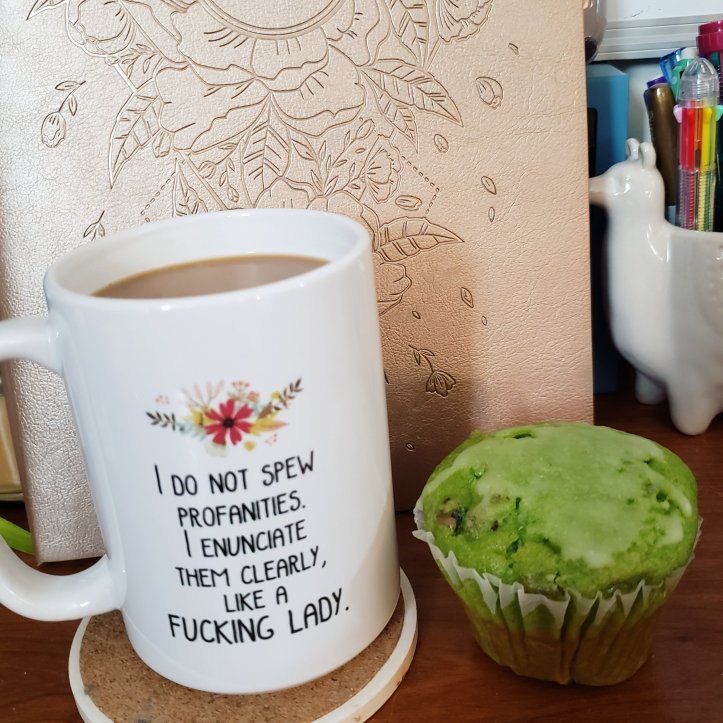 Starting off the morning with my favorite planner, a pistachio muffin, and a chai latte. The best mug ever was a birthday gift from Steve. He also got me a Bill Nye pop figure.
