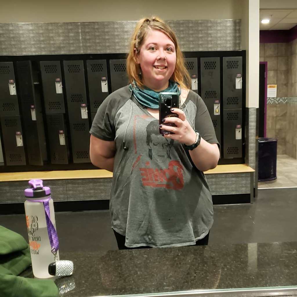 One I found clothes that fit properly, I figured what the heck? They are already on my body. Let’s take Bowie to the gym! I only planned on walking about 1/2 mile and then leaving because, let’s face it, my anxiety has been a huge freaking MONSTER lately and I thought even that would be tough. And honestly, it was. But once I got done with the 1/2 mile on the treadmill, I headed over to the circuit room and decided to just get some more things in while I was there. Not many people had shown up yet, so it was fairly quiet.